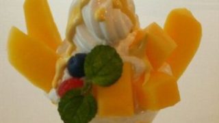 サンプルをスカイツリーで作った。タピオカは、ビニール樹脂の丸い部分を切りました。マンゴーソースは、半分くらい入れて、クリームを入れました。さっき切ったタピオカをクリームの上にのせます。ソフトクリームをさんしゅうまわして、ブルーベリーと、ラズ...